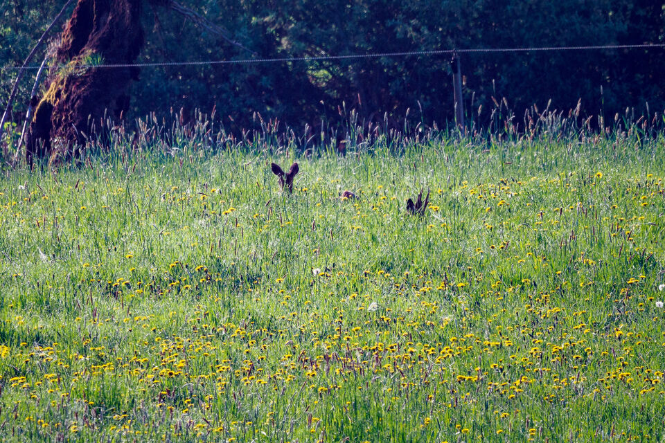 Tittar ut över ängarna mot Dalälvsviken. Solen skiner rakt mot mig och ger ett härligt morgondis över naturen. Något spetsigt sticker upp i gräset. Tar fram kikaren och spanar in de två rådjuren som ... läs mer..