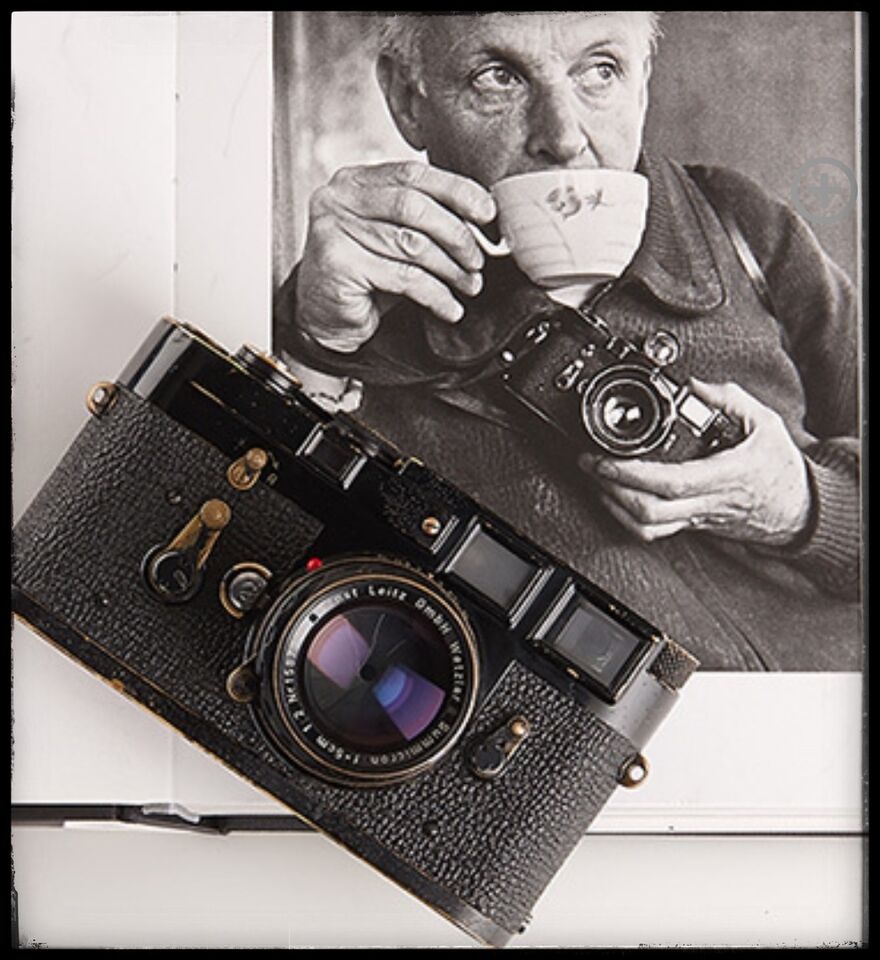 Tittar på en bild av en gammal svart Leica M3-kamera i en auktionskatalog.