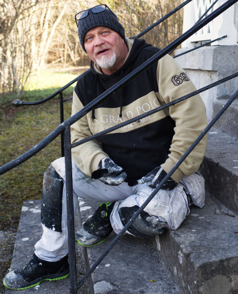 Huset på Gotland hade inte målats på många många år när vi skaffade det för sjutton år sedan. Sen fick vi hjälp med tak och fönster. Verandan hade blivit stående.