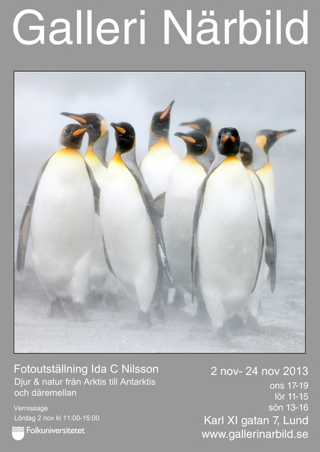 2 november - 24 november, Galleri Närbild, LundEtt urval av djur och naturbilder visar, från pingviner i söder till isbjörnar i norr.