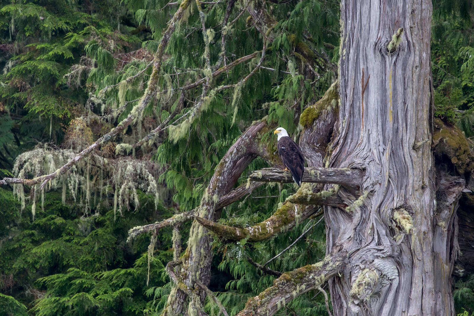 Om Enter fanns kanske de skulle se ut så här. En gigantisk röd ceder med besök av en vithövdad örn, fotograferad på Vancouver Island, British Columbia.