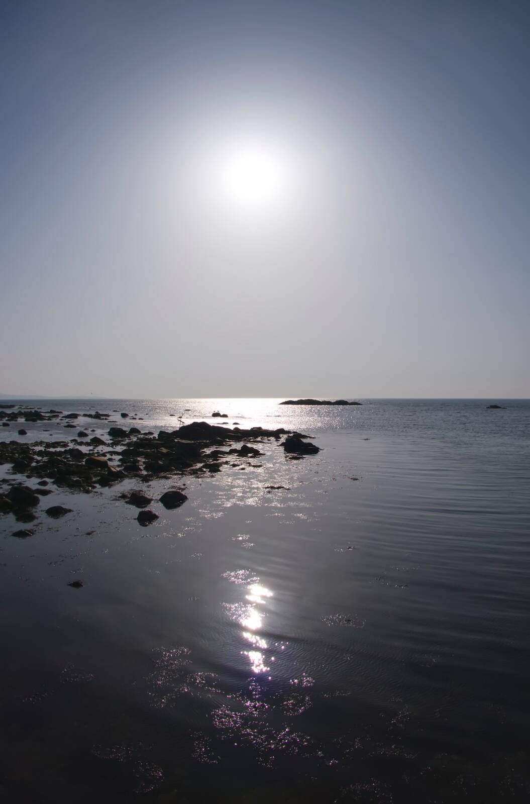 Över det stilla havet låg ett tjockt dis, som dämpade solskenet, men tillräckligt mycket ljus nådde den stilla vattenytan för att skapa skapa en spegling.