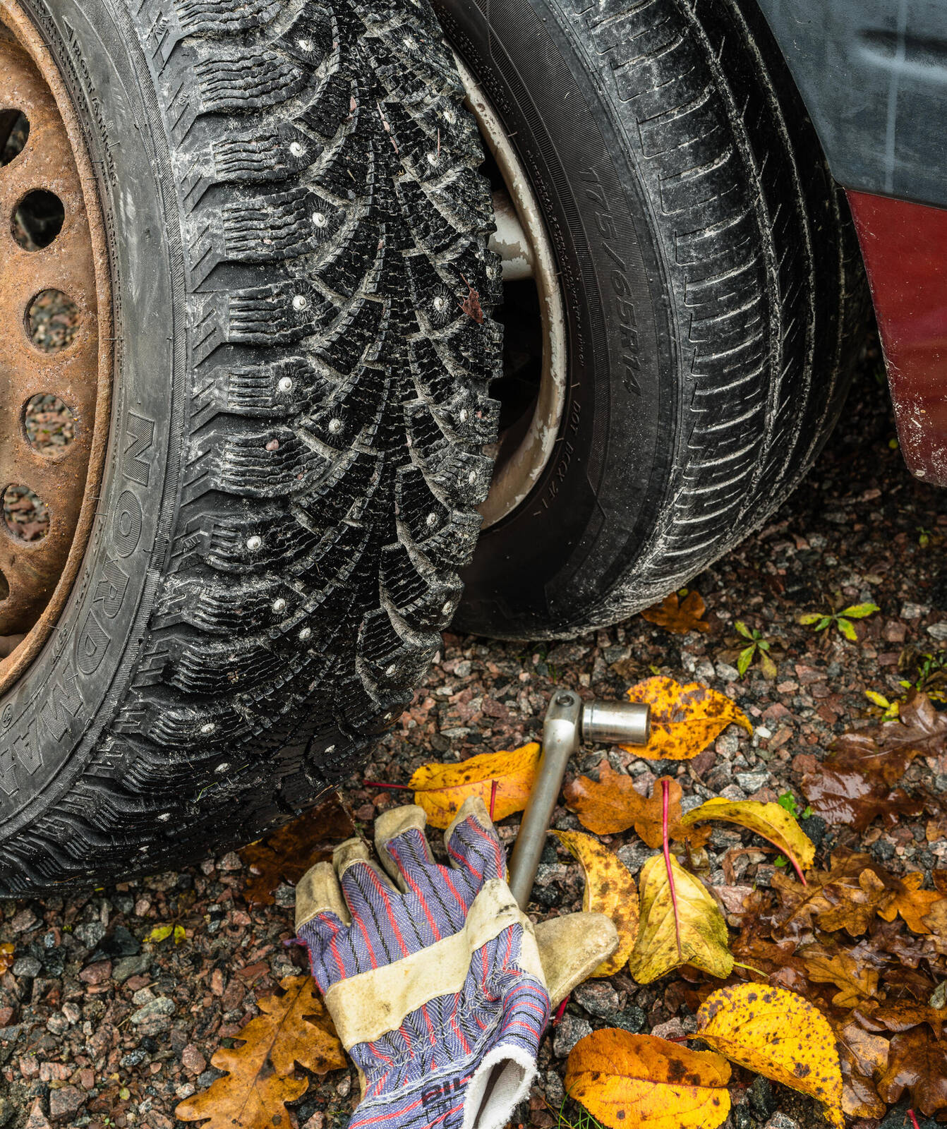 I skiftet härskar osäkerheten. Blir det snö på fredag, går bultarna att lossa? Hur var det med kopparpastan, ska den användas? Det enda säkra är att knäna blir blöta, händerna skitiga och att grannen anlitar ett däckhotell.