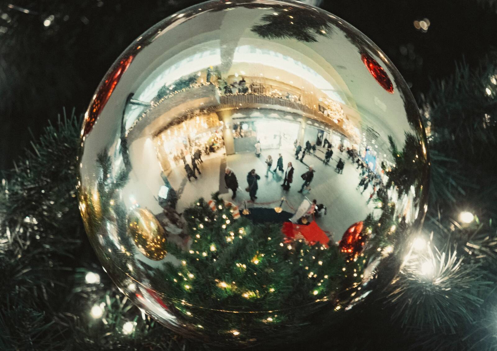 Fotade med ett teleobjektiv in i en stor julgranskula i Nordstan, Göteborg. Det märktes att folk var stressade men blev stannad av både en vakt och en narkoman som fråga vad jag sysslade med. Fågelskådning blev mitt svar.
