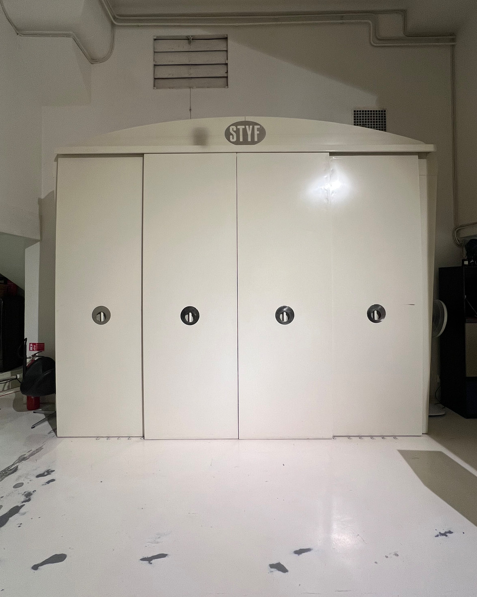 Snyggt plåtskåp designat av Nicklas Styf. Perfekt förvaring för all tänkbar fotoutrustning.