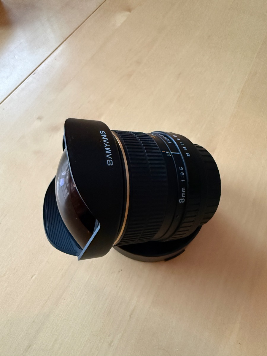 Säljer mitt Samyang 8mm CS Fish-Eye för Canon i nyskick, använt fåtal gånger sedan blivit liggande i sin påse.