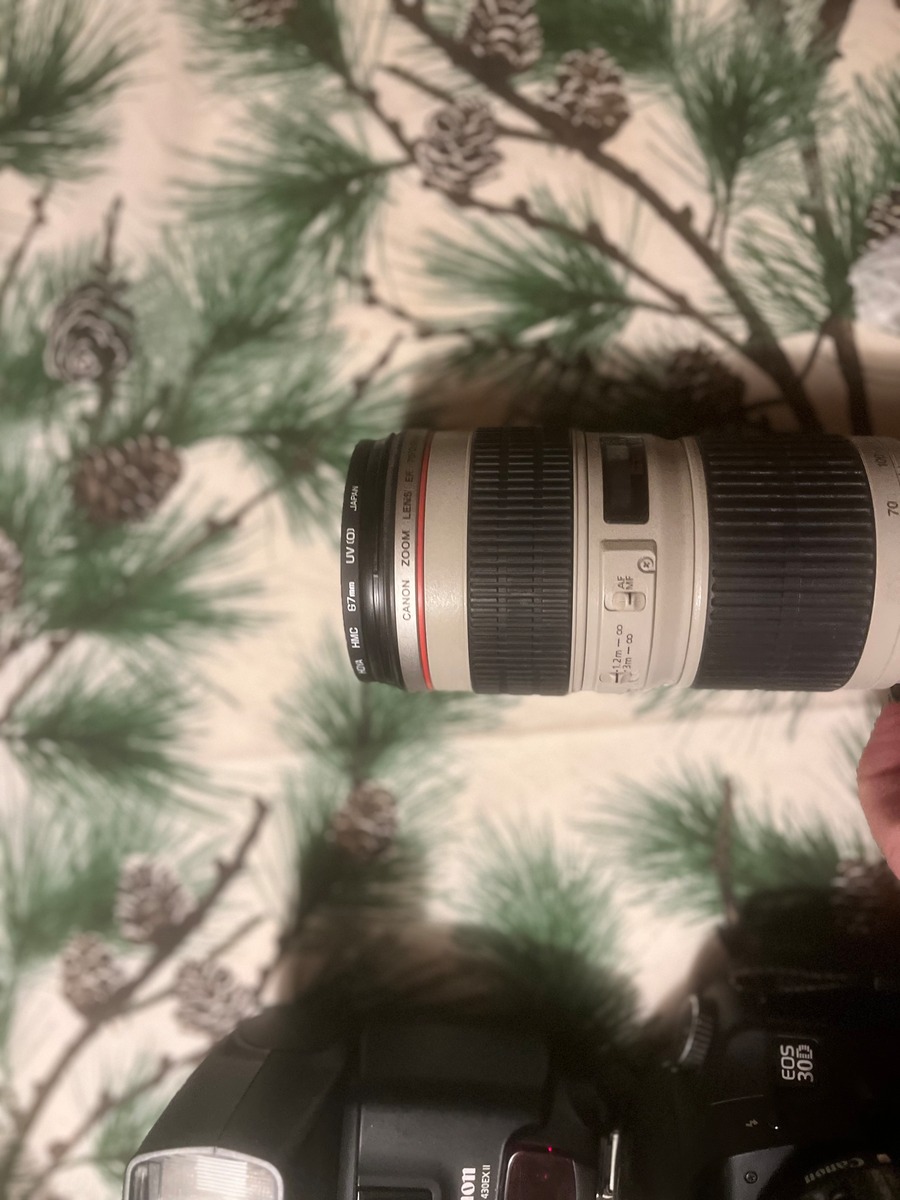 Det Canon objektiv som visas är ett EF 70-200mm f/2.8L IS II USM telezoomobjektiv, med en påmonterad Extender EF 2x III telekonverter. Den kombinerade enheten ger en total brännvidd på 140–400 mm med en maximal bländare på f/5.6.