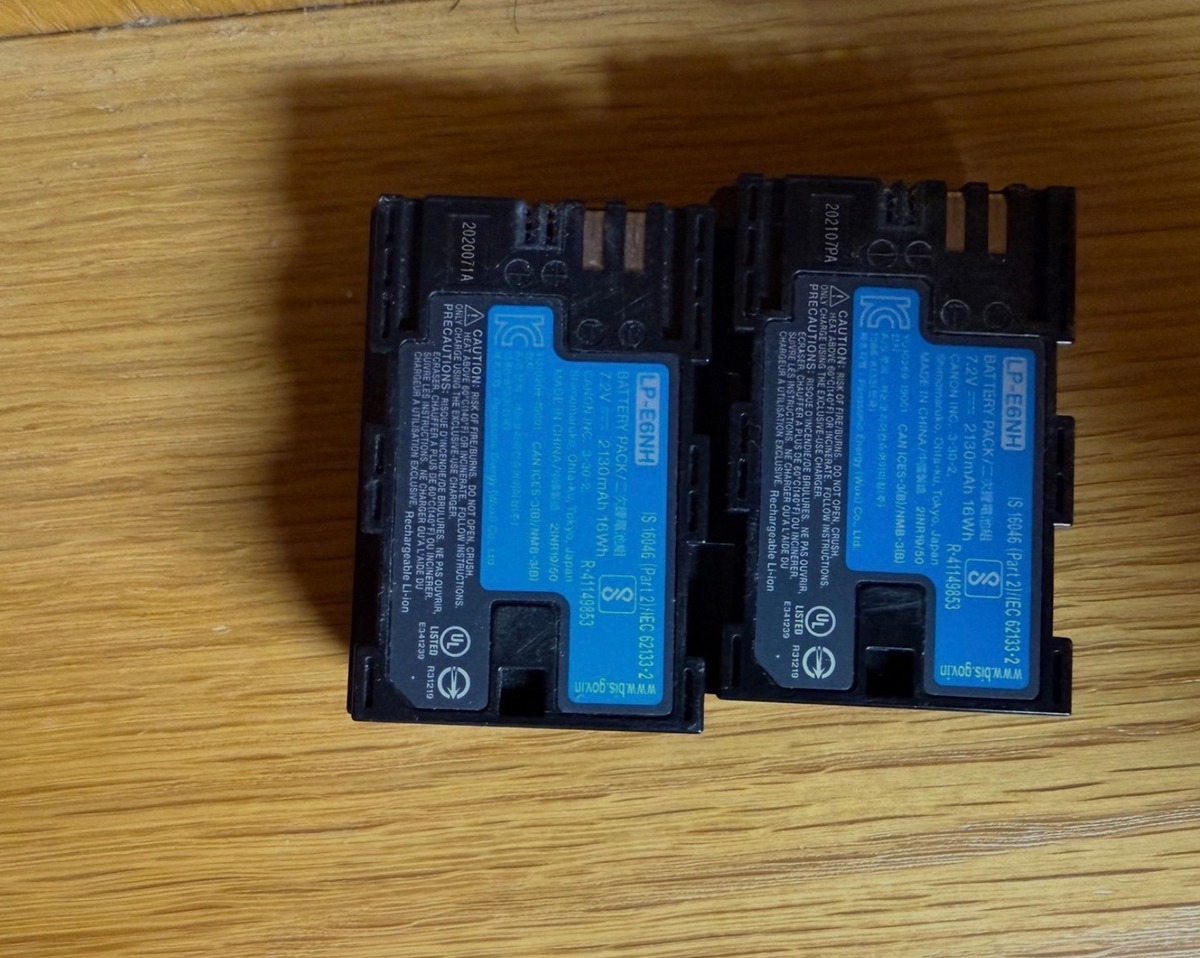 Modell: Två Canon LP-E6NH batterier. 7.2V, 2130mAh, 16Wh.