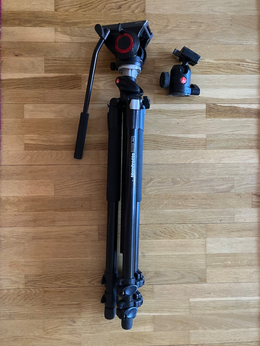 Modell: Manfrotto stativ + videohuvud och kulledsstativ