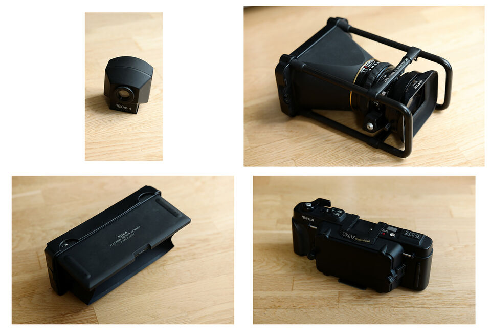 Säljer en Fuji GX617 panoramakamera med 180mm objektiv, sökare, motljusskydd och mattglasskiva.