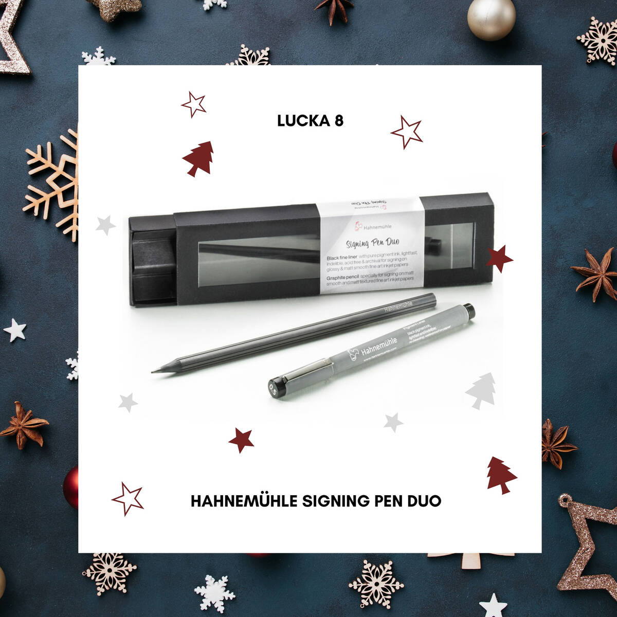 Hahnemühles Signing Pen Duo är ett paket med två pennor som är specialgjorda för att använda vid signering av foto- och konstprintar. I bläckpennan finns ett arkivbeständigt, ljusfast pigmentbläck av samma typ som i din fotoskrivare och den kan användas på alla typer av glossy fotopapper utan att blöda igenom. Pennans har en tunn tipp som fungerar även för detaljerade signaturer.