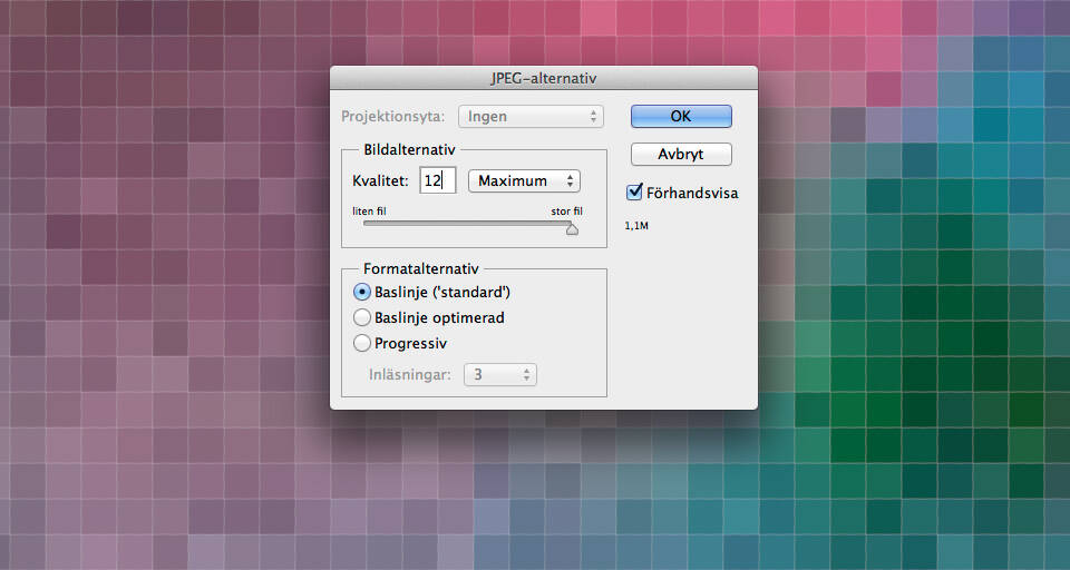 Tror man kan välja JPEG om man absolut vill ha en förstörande komprimering.