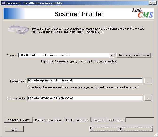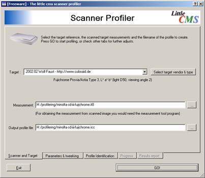 Wolf Faust som tillverkar prisvärda IT8-kartor i förhållande till de som de stora filmtillverkarna (Kodak, Fuji och så vidare) tillverkar. Själva profileringen görs av