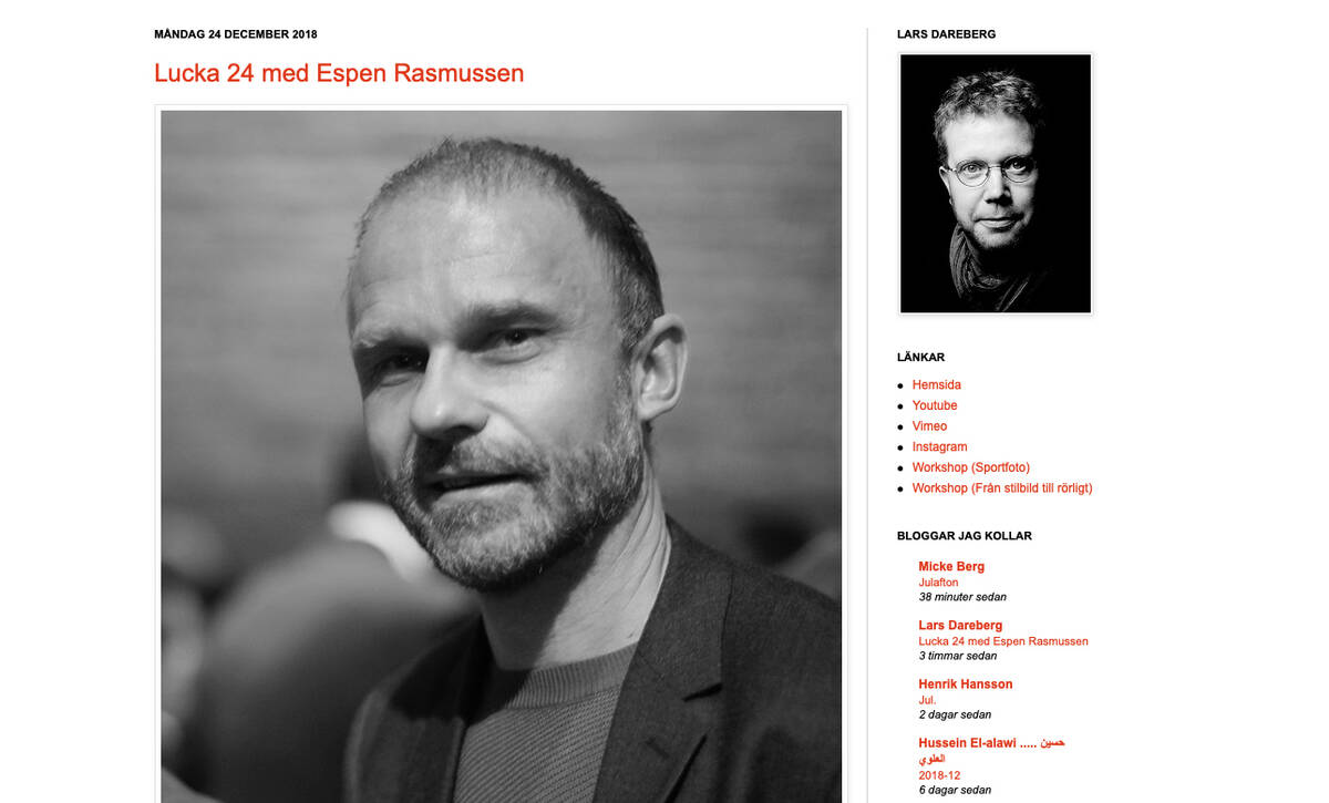 Sedan 2012 gör bildjournalisten Lars Dareberg en julkalender med 24 fotografintervjuer. 2018 var inget undantag, och idag är det dags för den 24:e och sista luckan. Bakom årets luckor har vi bland annat fått träffa Eva Tedesjö, Erik Nylander och Anna Hållams.