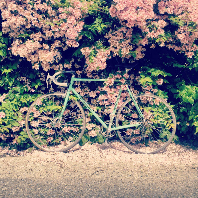 − I brist på både stativ och viljan att göra självporträtt känner jag att cykeln i sig är en jättebra synonym för både mig själv och att jag är på väg någonstans.