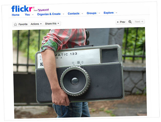 Den är helt och hållet skapad av plast, opraktiskt stor och går inte att fotografera med. Jolayne och Mattieu hittade den stora Kodak Instamatic-kameran på en fotoutförsäljning i Paris.