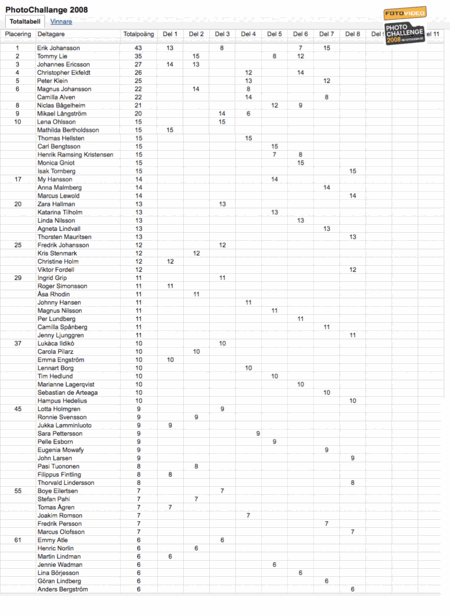 Artiklar > Photo Challenge 2008 - Totaltabellen