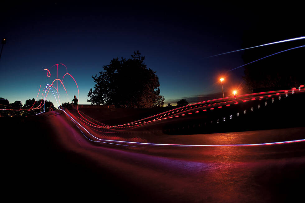 Kväll två är vi på plats i Rålis skatepark i Stockholm för att filma och fotografera skateboardåkning med utrustning från Nikon och Elinchrom. Vi prövar olika metoder att jobba med blixtar och går igenom samspelet mellan åkare och fotograf och filmare.