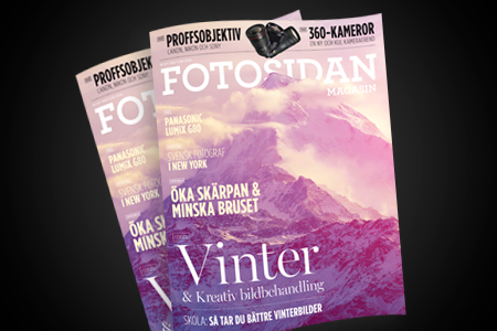 I fotoskolan lär du dig maximera skärpa och minimera brus. Vi testar flera nya proffsobjektiv och ett gäng 360-kameror i Fotosidan Magasin 1/2017. Vi har gjort reportage om en svensk fotograf i USA. Teman är vinter och kreativ bildbehandling. Läs mer...