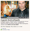 Ikväll (måndag) sänds dokumentären om David LaChapelle i repris för den som missade den i fredags. Filmen tar dig med till La Chapelles extrema värld med kvinnor i hamburgerbröd och kvinnor i kristallkronor. Läs mer...