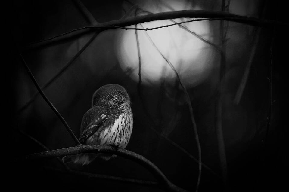 Mats Anderssons vinnarbild i Wildlife Photographer of the Year har titeln ”Moonlight requem” och föreställer en blundande sparvuggla.