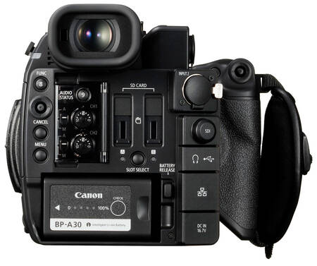 Mikrofonkontakterna (XLR) sitter på kamerahuset till skillnad mot systermodellerna där kontakterna sitter på det avtagbara handtaget. C200 kan därför behålla ett kompakt ytterformat även om professionella mikrofoner används.