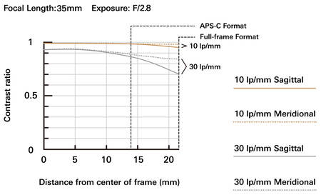 Om vi jämför tamrons 35/2.8 med Samyangs 35/2.8 (inom parentes) så ser vi problemet: