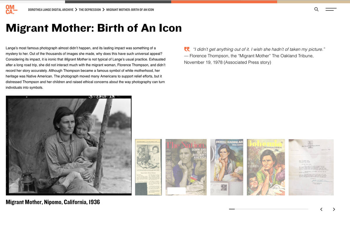 Oakland Museum of California har sammanställt en digital utställning med några av Dorothea Langes fotografier.