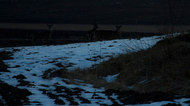 Tävling > Ta en bild på det första vårtecknet! > Vitsvanshjortar på åkern