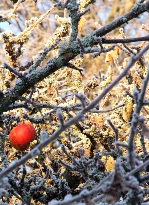 Höstäpple i vinterskrud. Copyright © FlodaNilsson