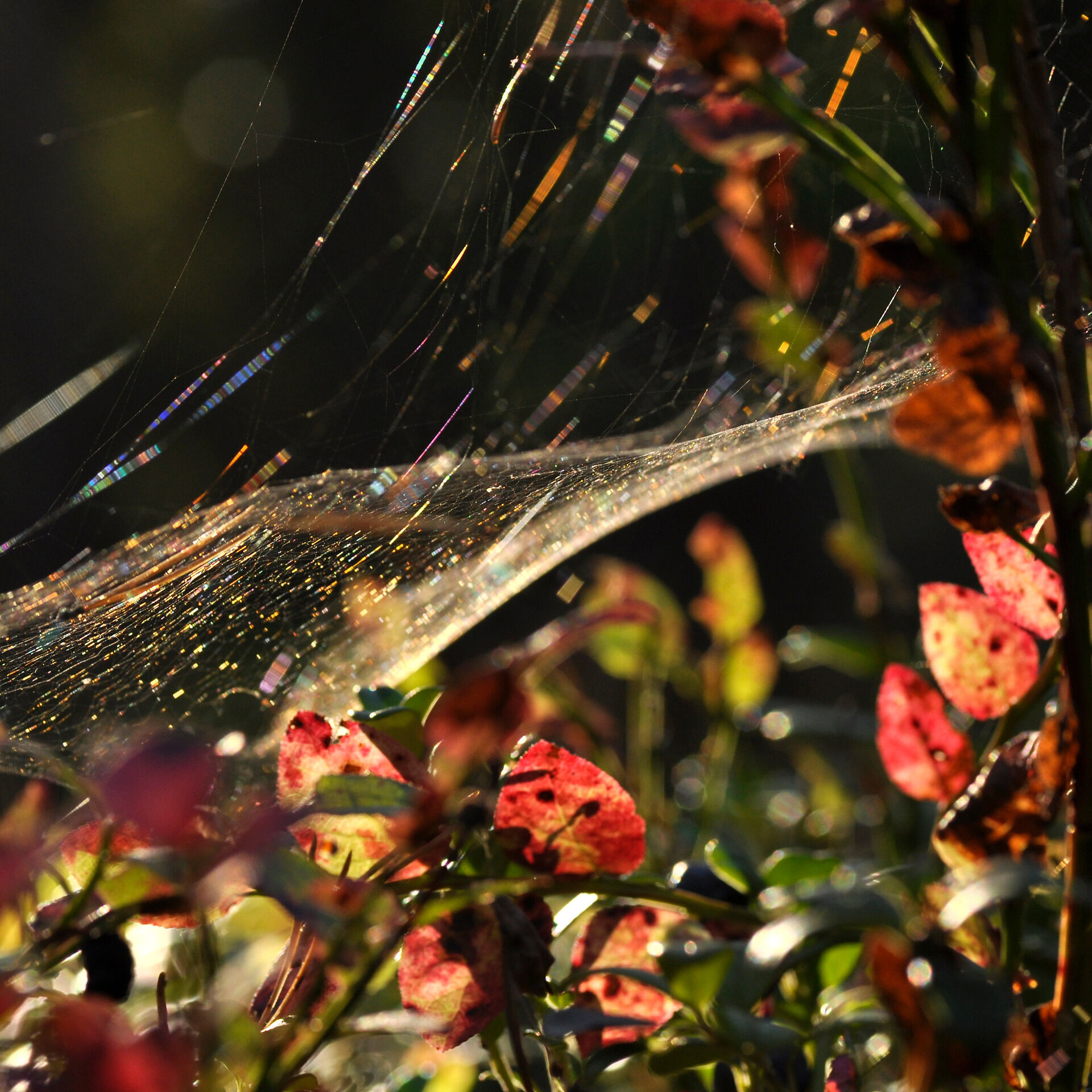 Spindelnät i blåbärsriset Copyright © Fjäril