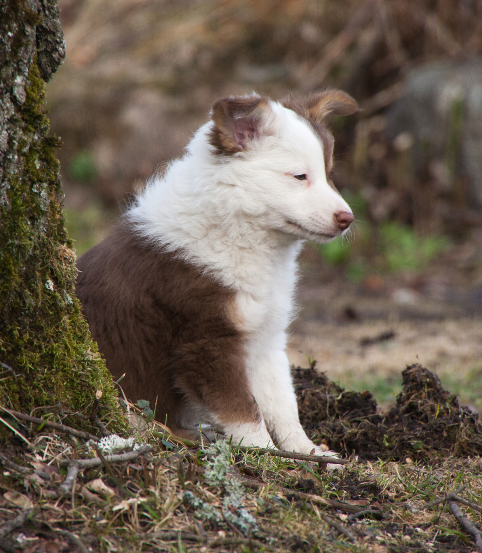 Trött men nöjd hundvalp. Copyright © L-P
