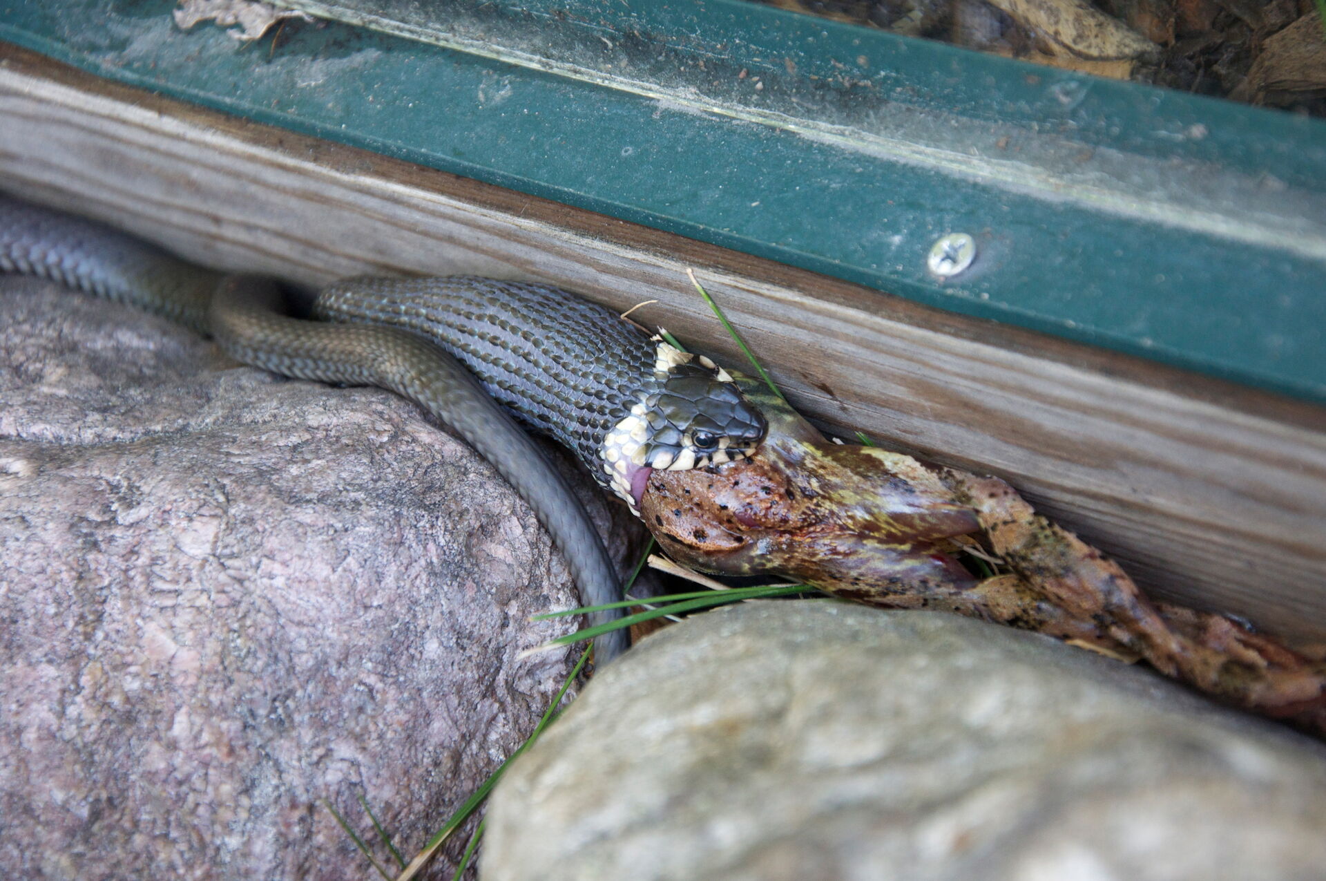 En snok tar en groda i sommarsolen Copyright © fridanylund