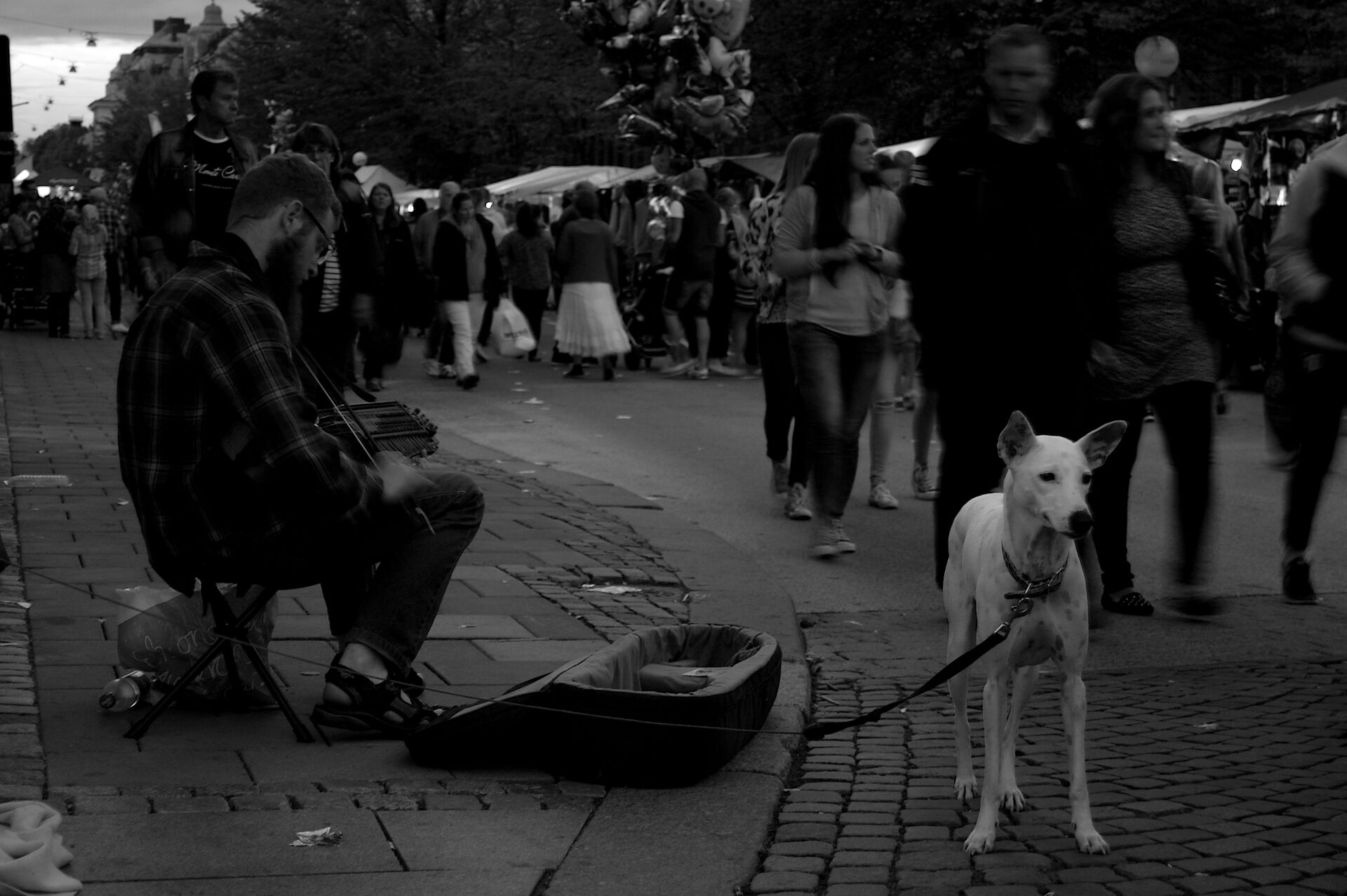 Gatumusikant och hund Copyright © Homy