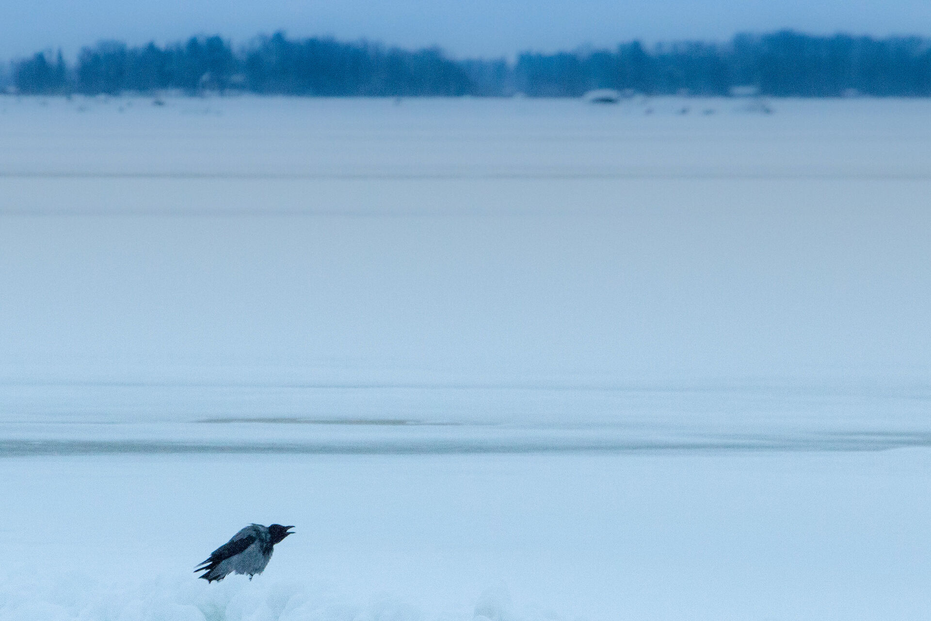 Tävling > Fotosidan Masters 2015 - Etapp 4 (Natur) > Ensam kråka vid en frusen Hjälmaren