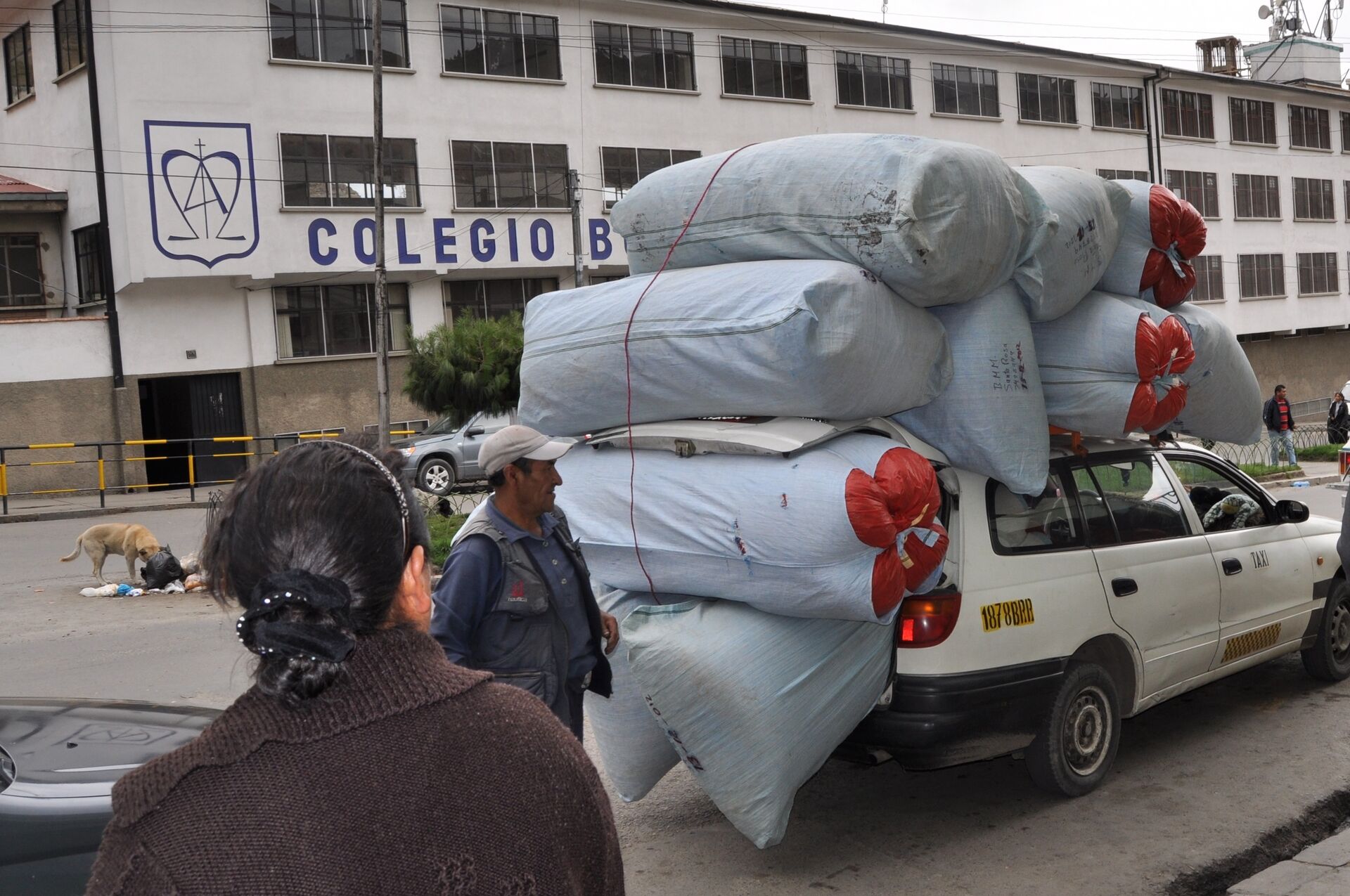Lastande av säckar med kokablad. La Paz, Bolivia Copyright © BodWil