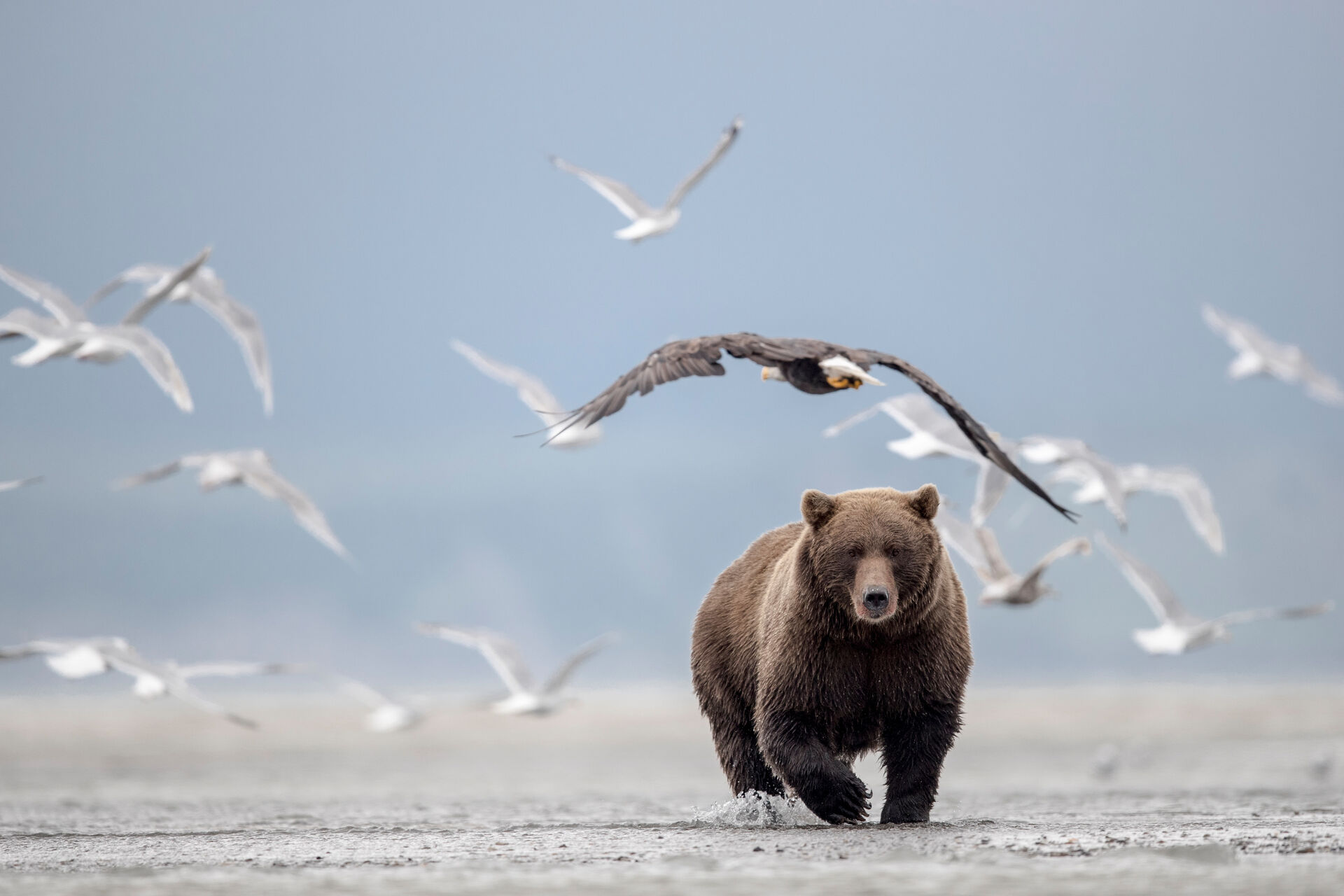 Tävling > Vad ska man egentligen tycka om en bild? > Grizzly, trutar och en vithövdad havsörn.