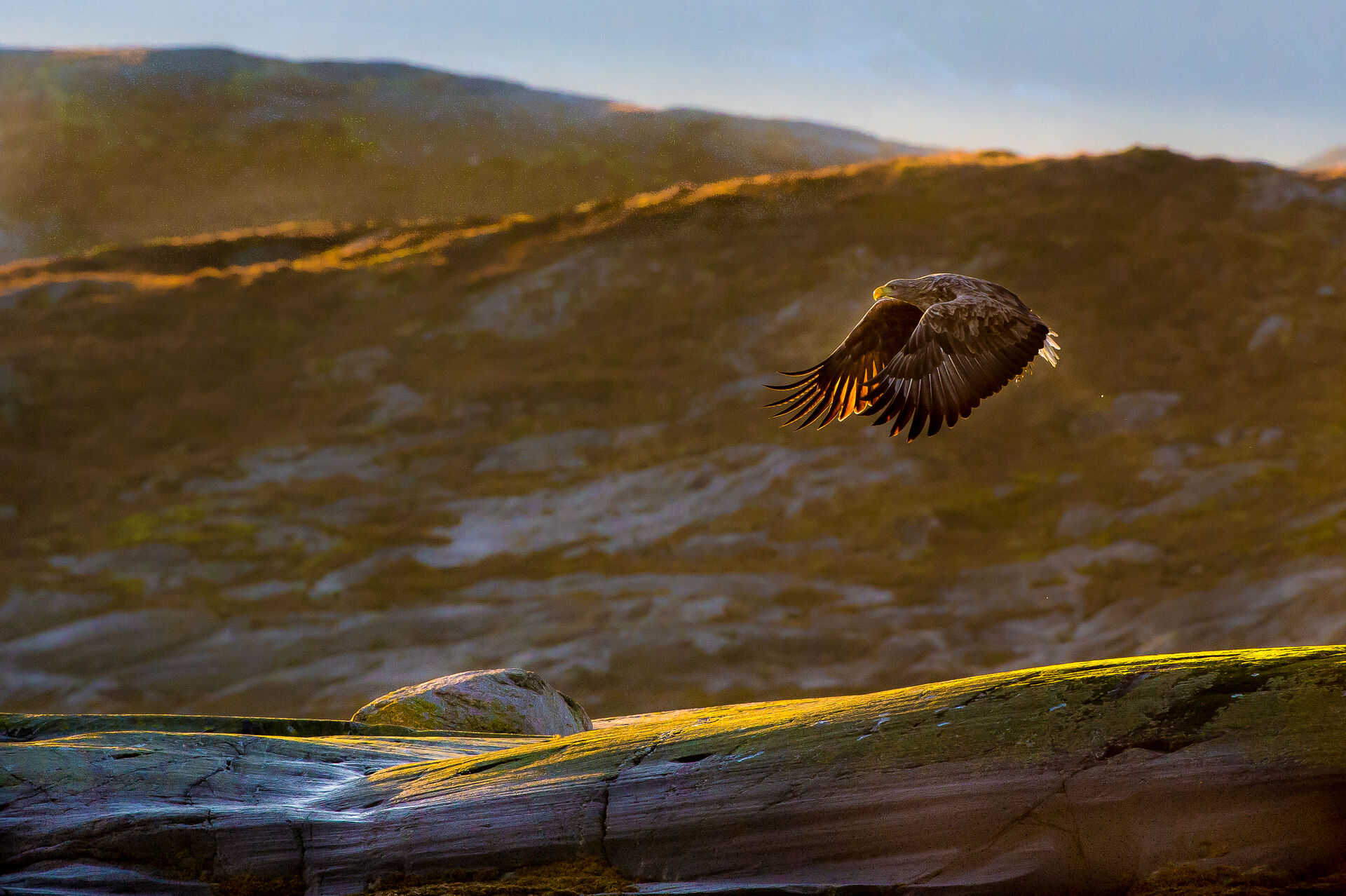 Tävling > Olympus | TEMA: ROVFÅGEL | Vinst: Workshop med Magnus Nyman/N > Ljudlöst flög han över de slipade klipporna i den nedgående solens strålar