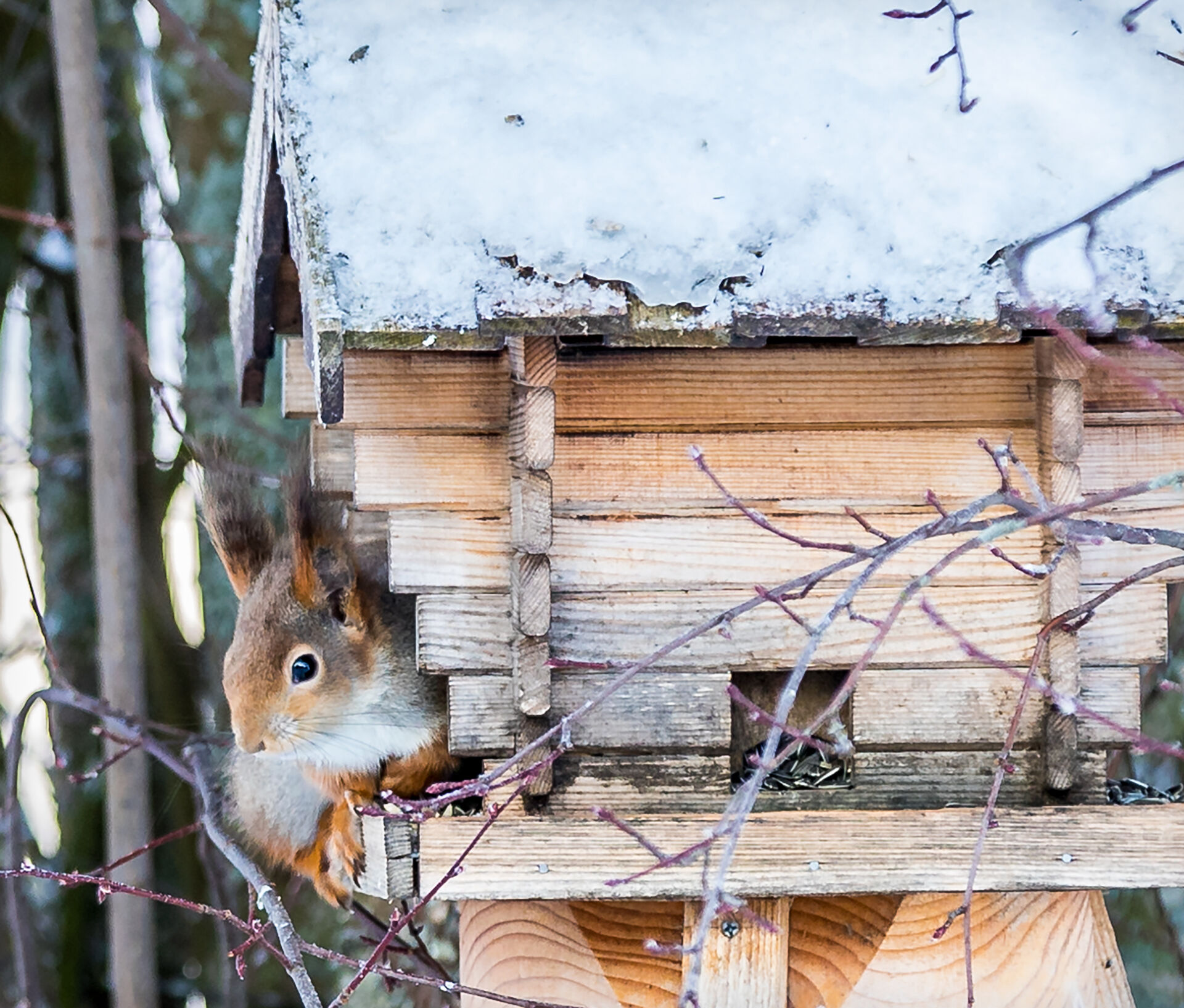 Tävling > Fotosidan Masters 2018 - Etapp 4 (Natur) > Ekorre länsar fågelbordet