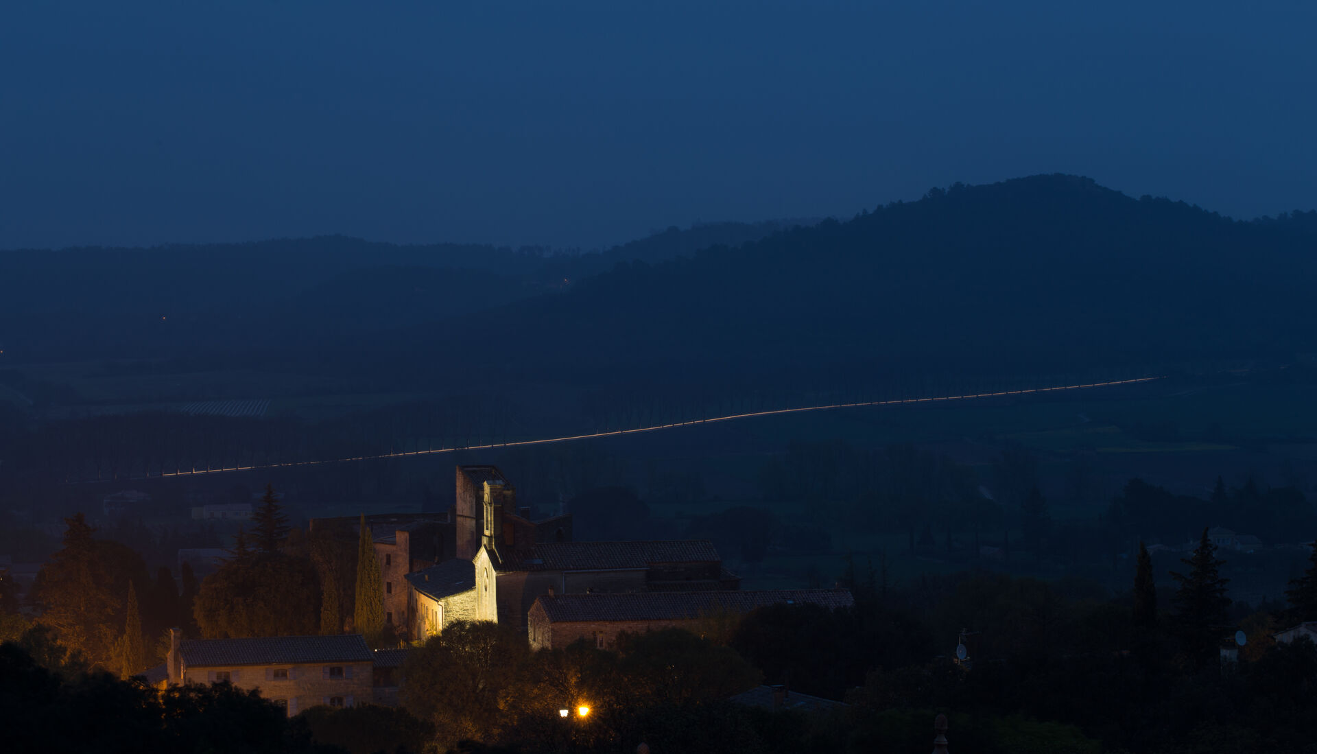 Tävling > Fotosidan Masters 2019 - Etapp 1 (Natur) > Utsik från fönstret vid min arbetsplats i St Siffret, Frankrike, efter mörkrets inbrott