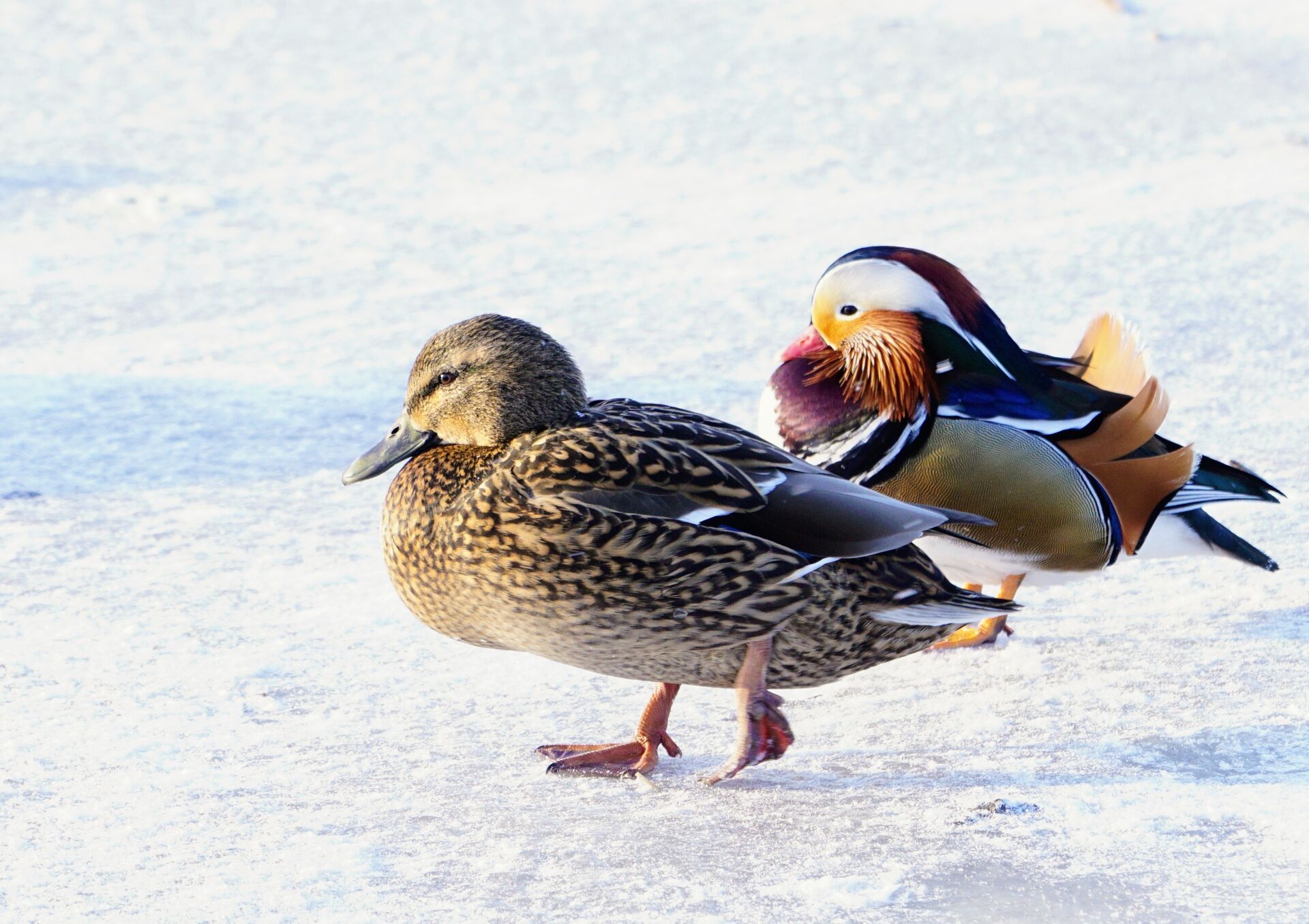 Tävling > Fågelporträtt | Vinst från Crimson > Mandarin-anden på vinterpromenad i Mälaren
