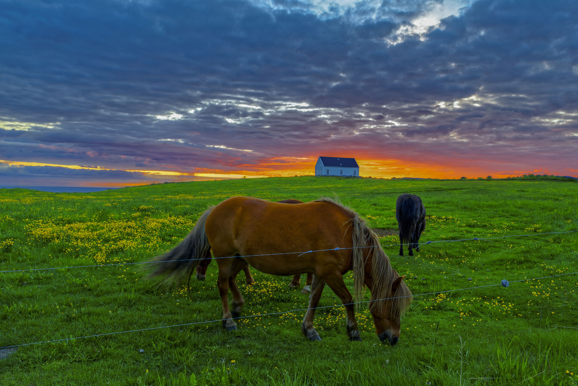 Midnattssol med Islandshäst. Copyright © lassetjus