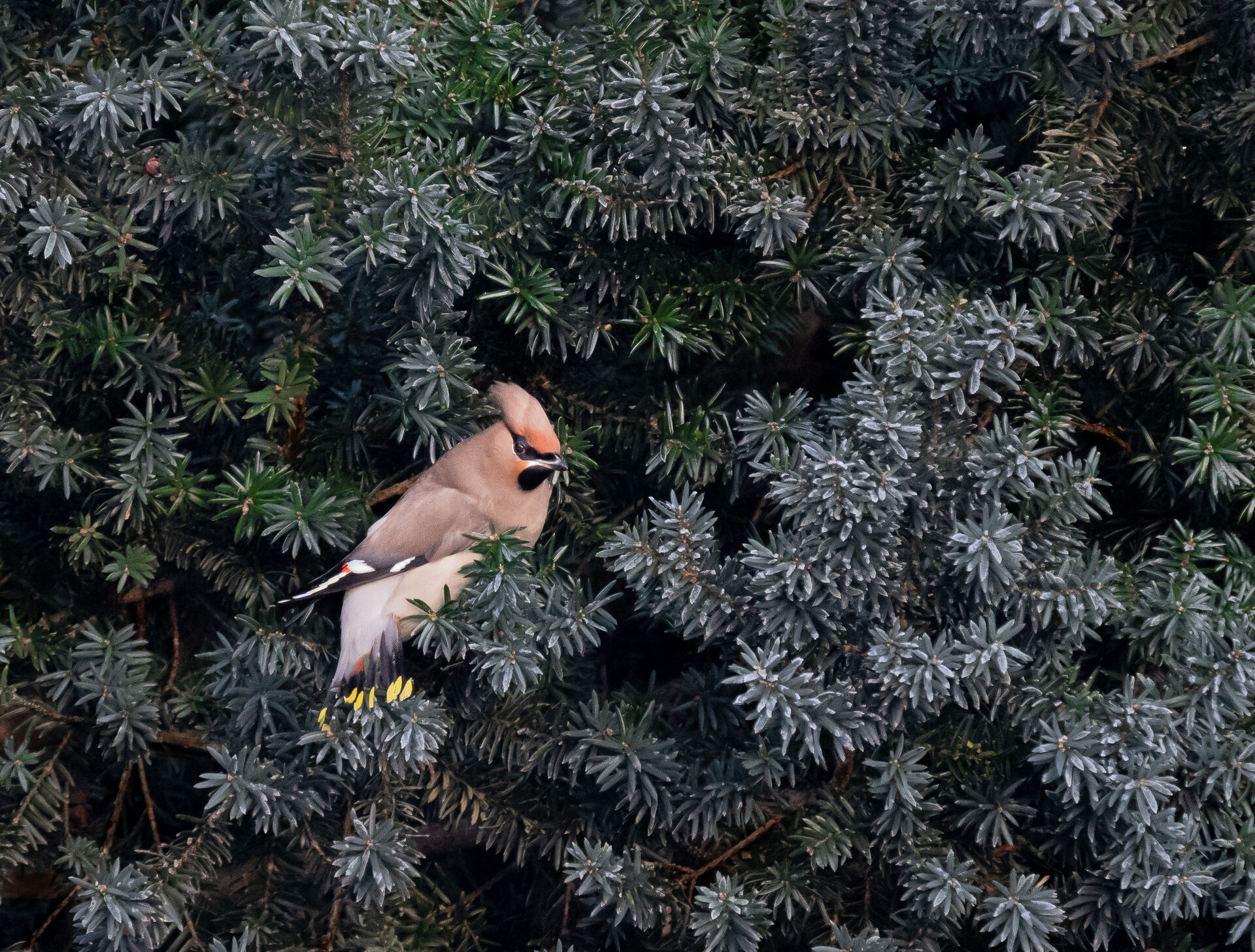 Tävling > Fotosidan Masters 2022 - Etapp 3 (Natur) > Sidensvans i frostig idegran