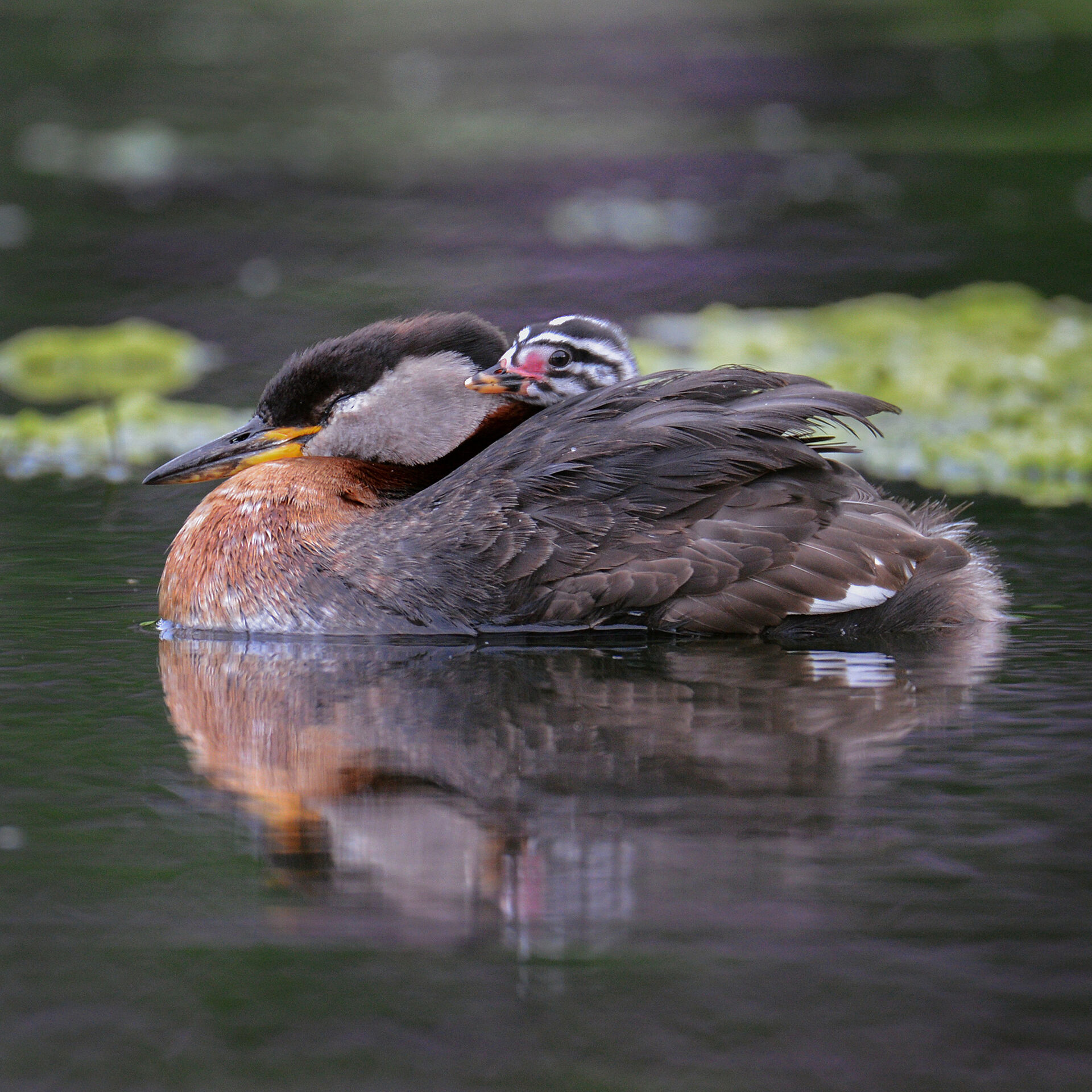 Gråhakedopping med unge Copyright © Nikolai