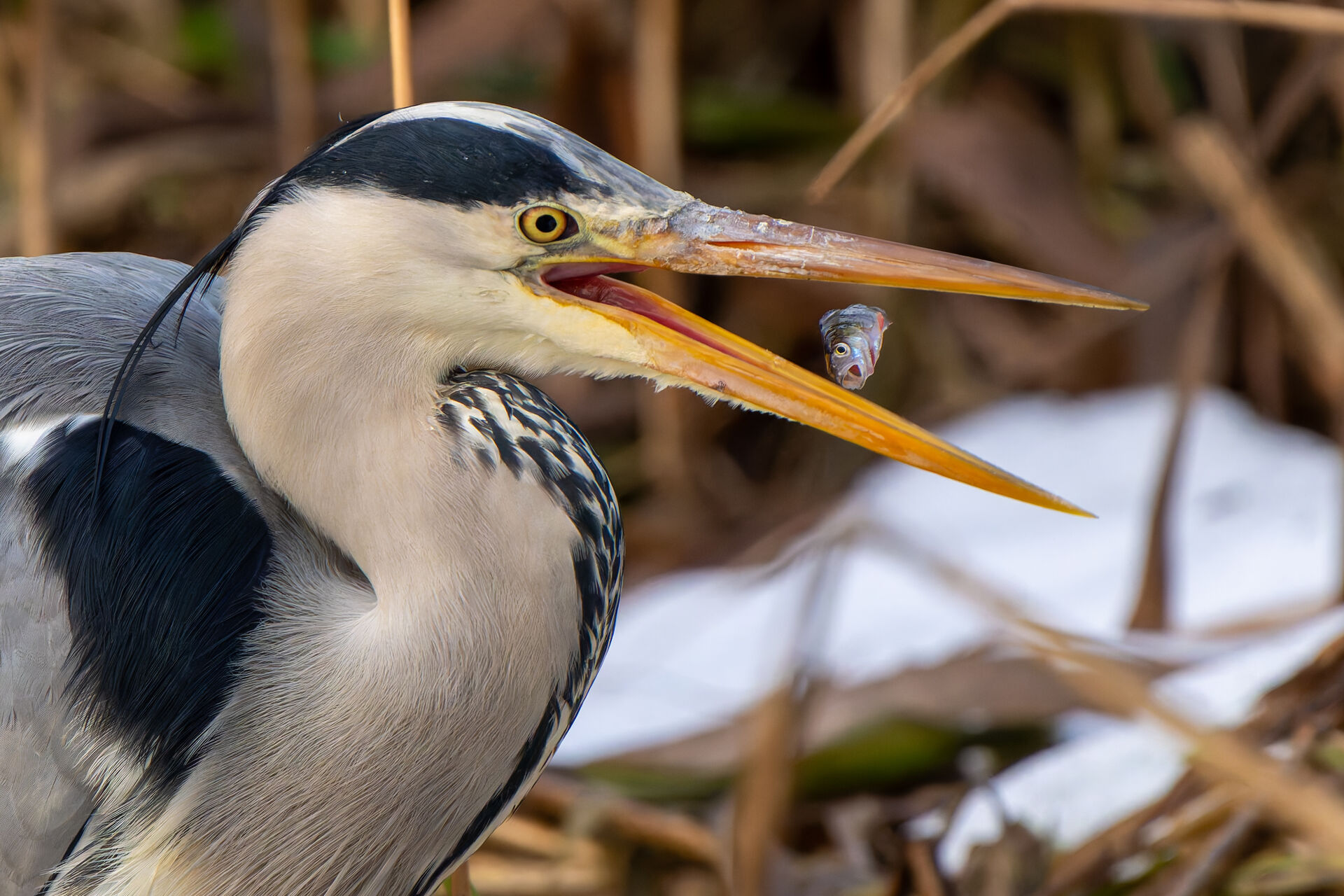 Tävling > Fotosidan Masters 2025 - Etapp 3 > Gråhäger med abborre