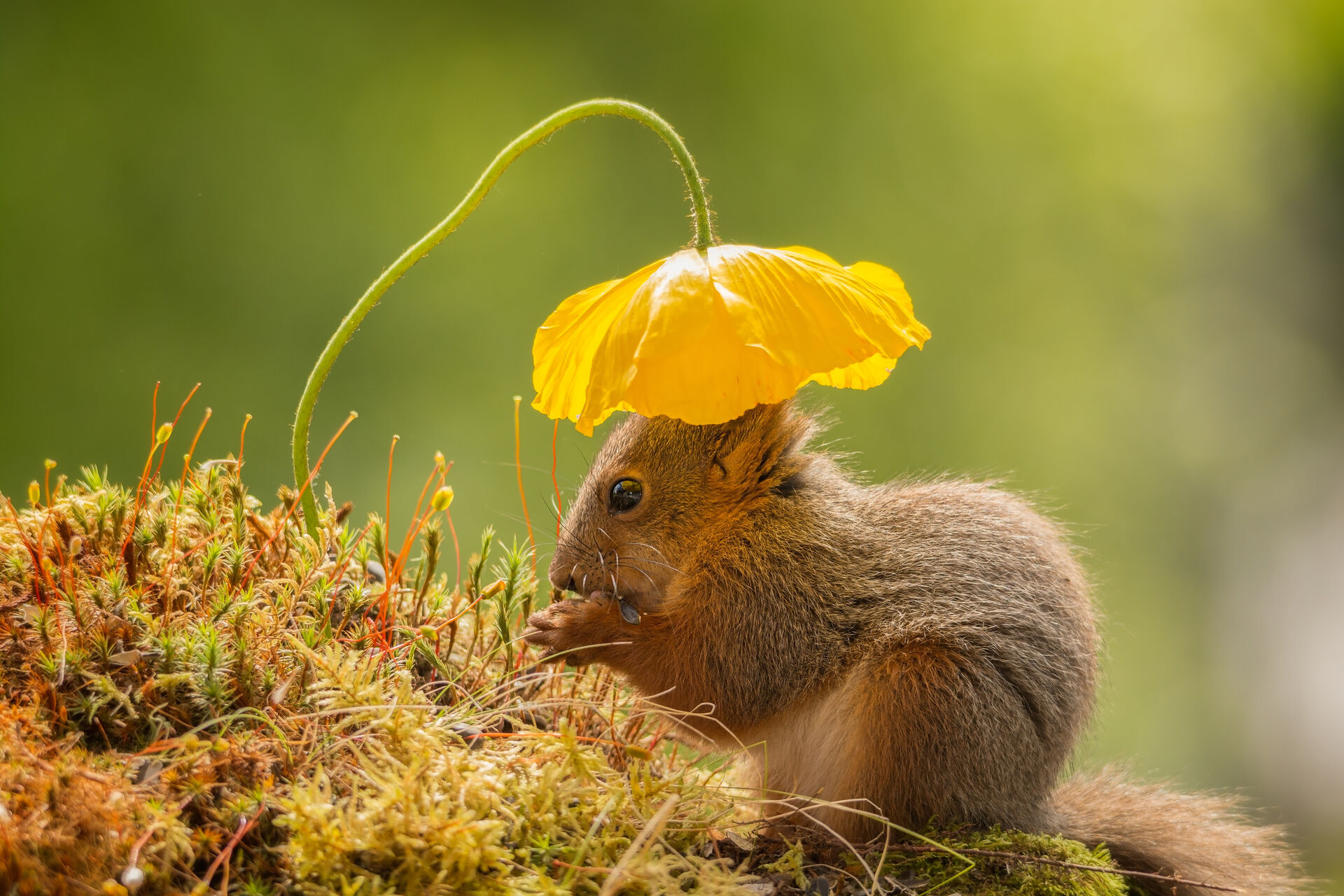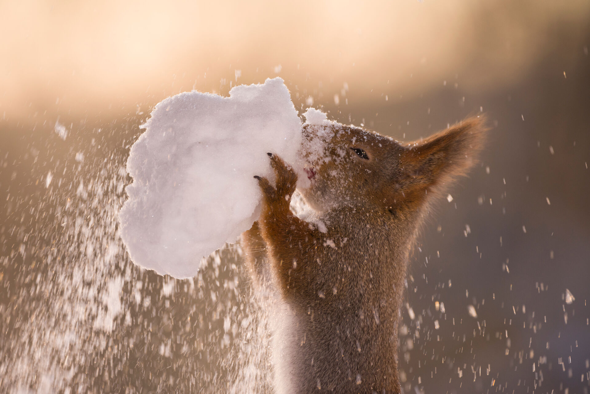 ekorre äter snö