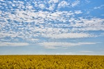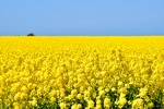 Rapsfält och blå himmel.