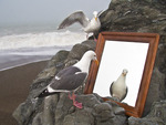 Mås vid spegel.