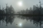 Gryningsdis över sjön