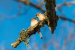 Två pilfinkar har det mysigt i januarisolen...